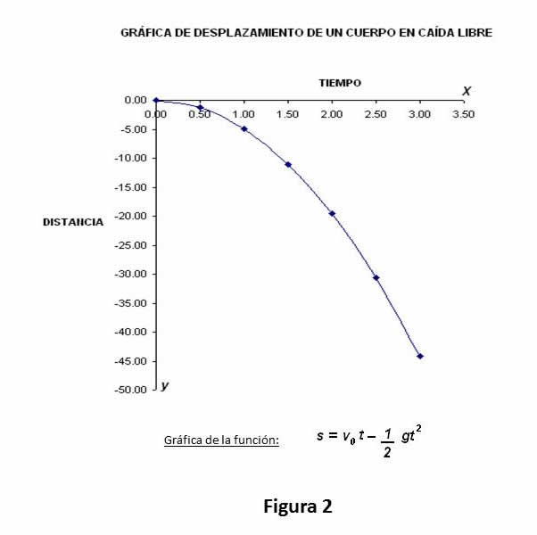 Figura 3 Muestra la gráfica de la distancia recorrida por un cuerpo que se dejo caer desde la azotea de un edificio.